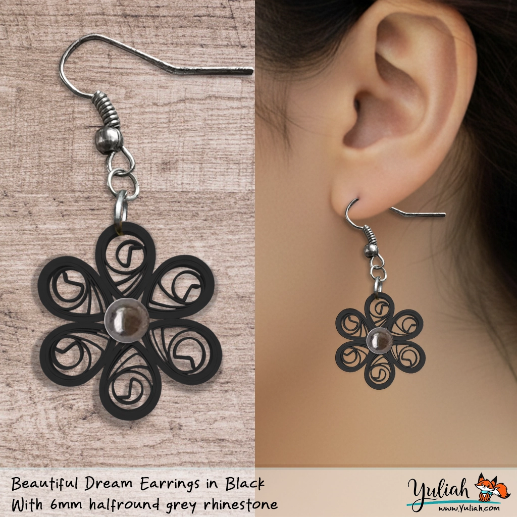 “Beautiful Dream” Black Grey Floral Dangle Earrings